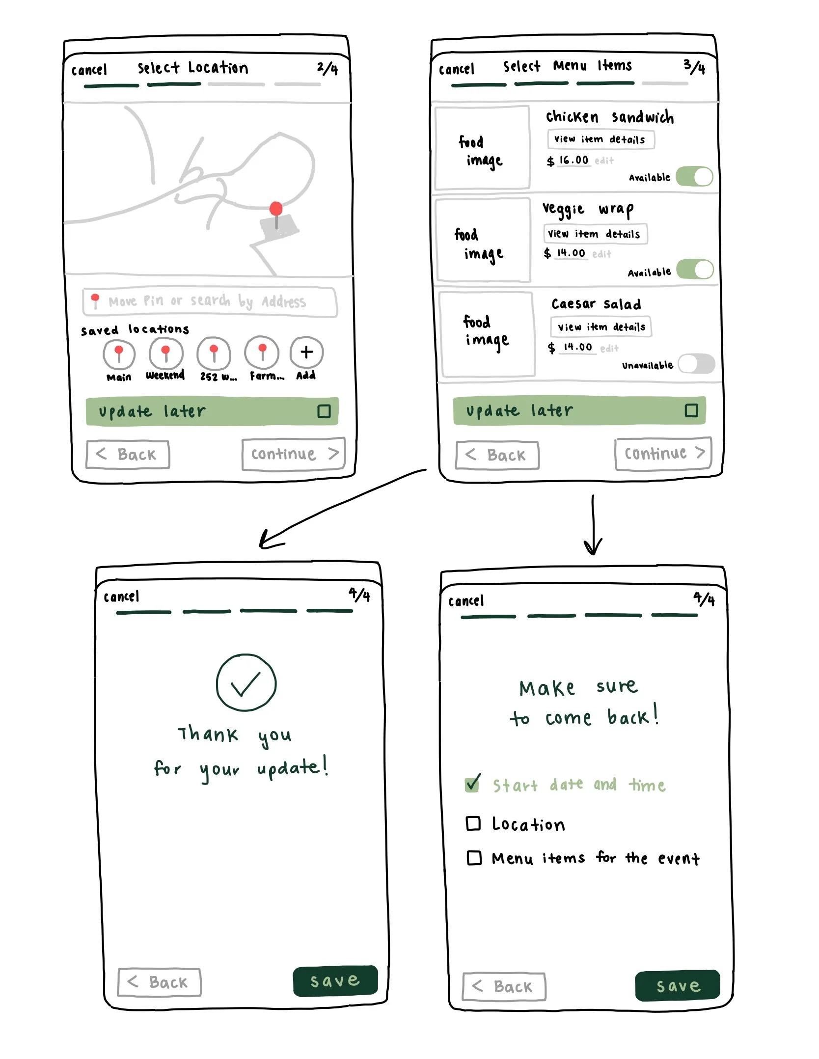 Vendors needed flexibility for cases when they didn’t yet know their final schedule, which informed features like “Update Later”